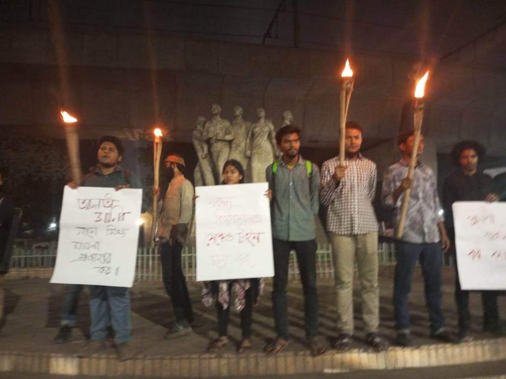 আলভী-সানির নামে মিথ্যা মামলা প্রত্যাহারের দাবিতে ঢাকা বিশ্ববিদ্যালয়ে শিক্ষার্থীদের মশাল মিছিল