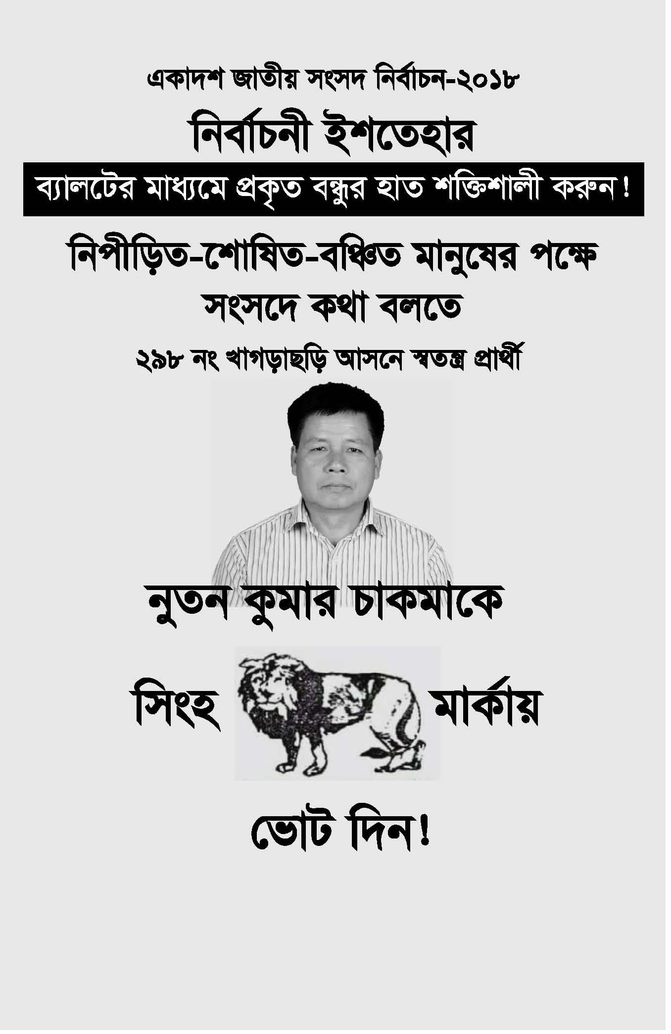 খাগড়াছড়ি আসনে ইউপিডিএফ সমর্থিত স্বতন্ত্র প্রার্থী নুতন কুমার চাকমার নির্বাচনী ইশতেহার ঘোষণা