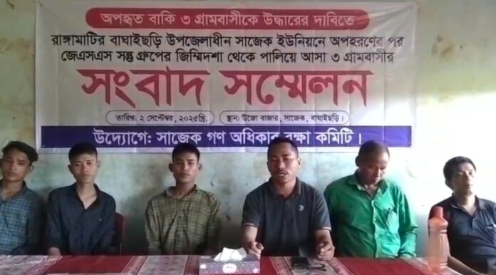 On July 1, 2025, six villagers from Rangapani Chara village in Ward 6 of Sajek Union, Rangamati, were abducted by the JSS (Santu Group). Of them, three managed to escape captivity on August 26, 2025.