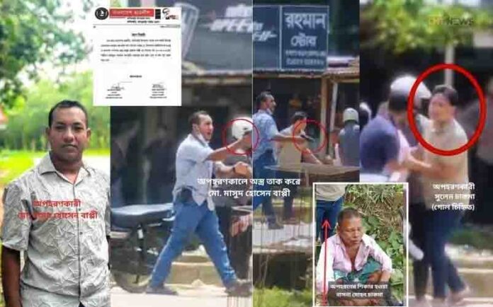 A video taken during the incident shows Masud Hossain Bappi and several other armed men pointing weapons at Basna Mohan Chakma and dragging him away. The footage also shows them threatening bystanders with guns to intimidate the crowd.