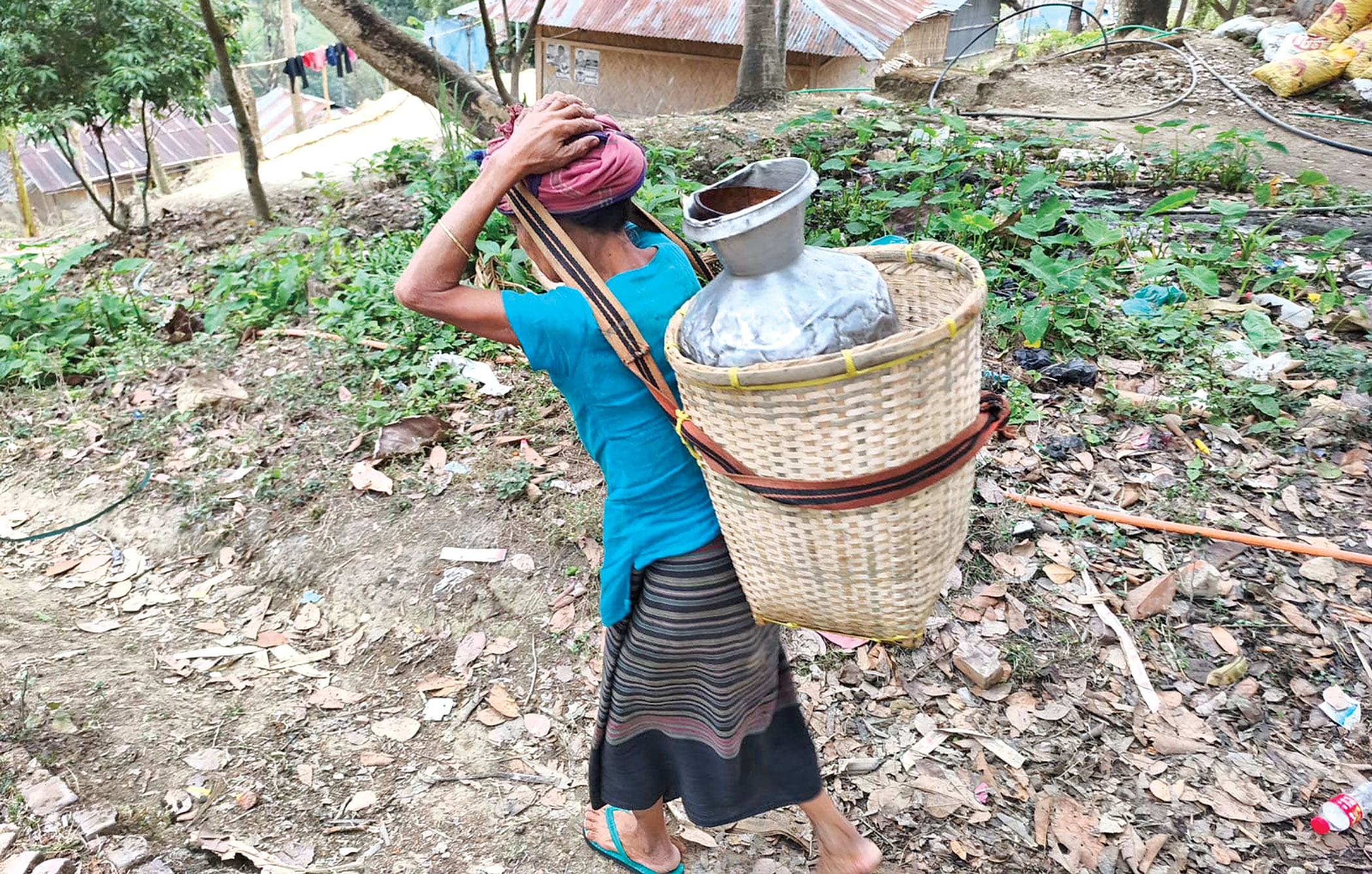 Sadhana Devi Chakma from the same village said, “Sometimes we have to fight for water. After waiting in long lines for hours, we often manage only a pitcher.”